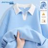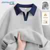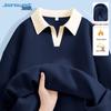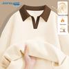 JEANSWEST Damen Fleecegefüttertes Color-Block Polo-Sweatshirt