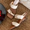 Damen Hausschuhe mit eckiger Zehenpartie, gewebte Sandalen, Slipper, High Heels, Schuhe für Damen, Trend 2025, Sommer, Strand, Casual, Pumps, flache Pantoletten, Mujer