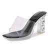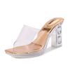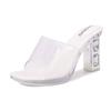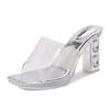 2025 Sommer Transparente PVC Plateau Damen Hausschuhe Sandalen Elegant Eckige Zehenpartie Kristall Dicke Hohe Absätze Pantoletten Seiten Schuhe