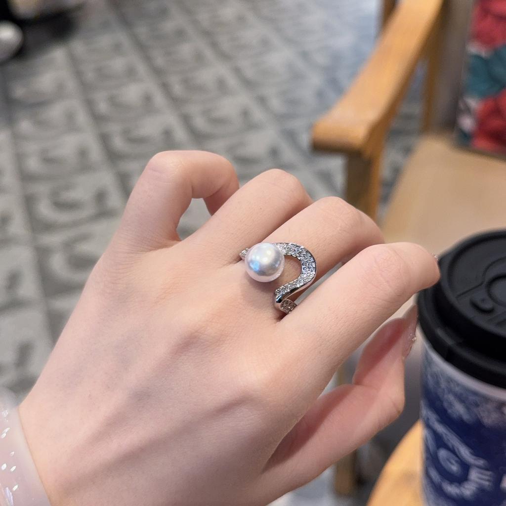 Süßwasserperlenring Damen Öffnend Verstellbar Wellenmusterring Temperament Hochwertiger Schmuck