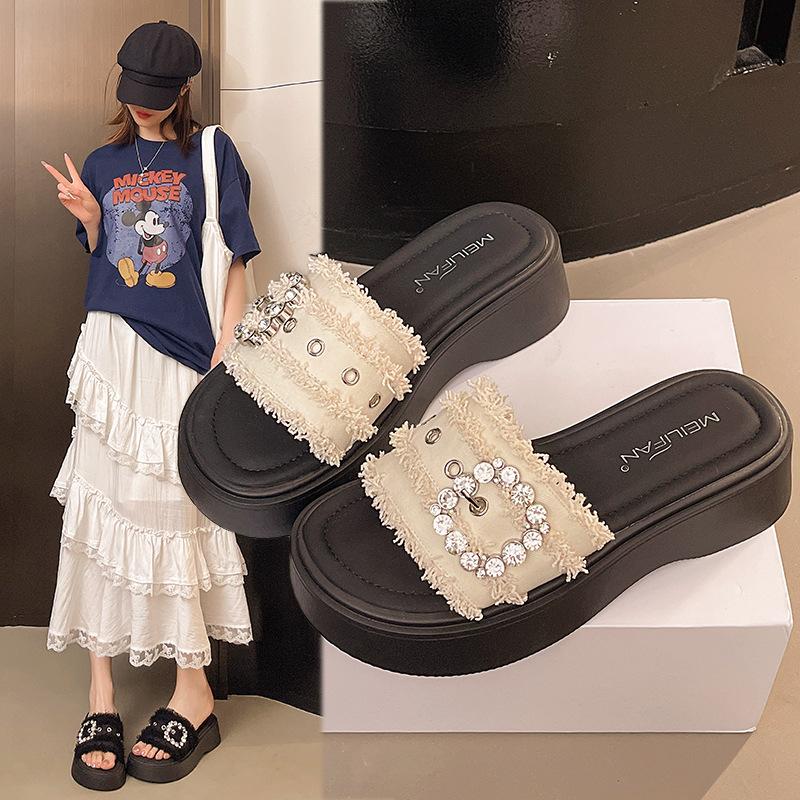 Französische High-End-Pantoletten mit dicker Sohle und Keilabsatz für Damen-Sommerbekleidung 2025 Frühling neues Temperament vielseitige Strandsandalen