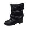 Stiefel Damen Sommer 2025 neue High-End schwarze Western-Cowboystiefel dicker Absatz plissierte Stiefel mittlerer Schaft Ritterstiefel