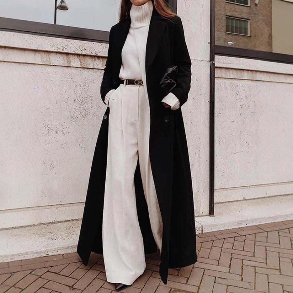 Women's Long Black Double-Breasted Overcoat