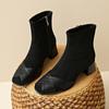Rindslederversion~~ Maillard-Spleiß elastische Stiefeletten Damen 2025 neu Herbst dicker Absatz und Knöchel dünne Stiefel Einzelstiefel