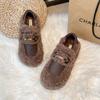 French Mary Jane fluffy shoes for women's outer wear 2025 winter new velvet warm one pedal Doudou loafer cotton shoes