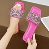 2025 summer new sequined flat bottom soft bottom comfortable casual women's slippers foreign trade large size 36-43