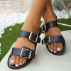 Europäische und amerikanische Übergröße Schnalle flache Sohle Ein-Wort-Schuhe Damen Außenhandel Retro leicht Strand coole Slipper Slipper
