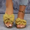 Außenhandel neue flache Strassschleife Ein-Wort-Slipper Damen tragen einfarbig leichte Stoff coole Slipper 2025