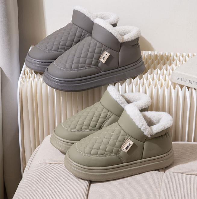 Neue Schneestiefel für Damen im Winter, mit Plüsch und dicker Isolierung für warme Baumwollschuhe für zu Hause, wasserdichte und rutschfeste Baumwollpantoffeln in einfarbiger Farbe