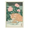 Japanische Tigerkatze in Badewanne Poster Drucke Leinwand Malerei Retro Ästhetik Wandkunst Bild Japandi Badezimmer Toilette Heimdekor