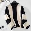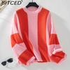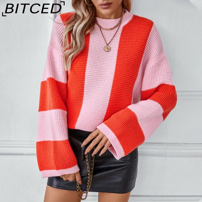 BITCED Women's Color-Block Striped Knit Sweater Fall/Winter Casual Oversized Pullover