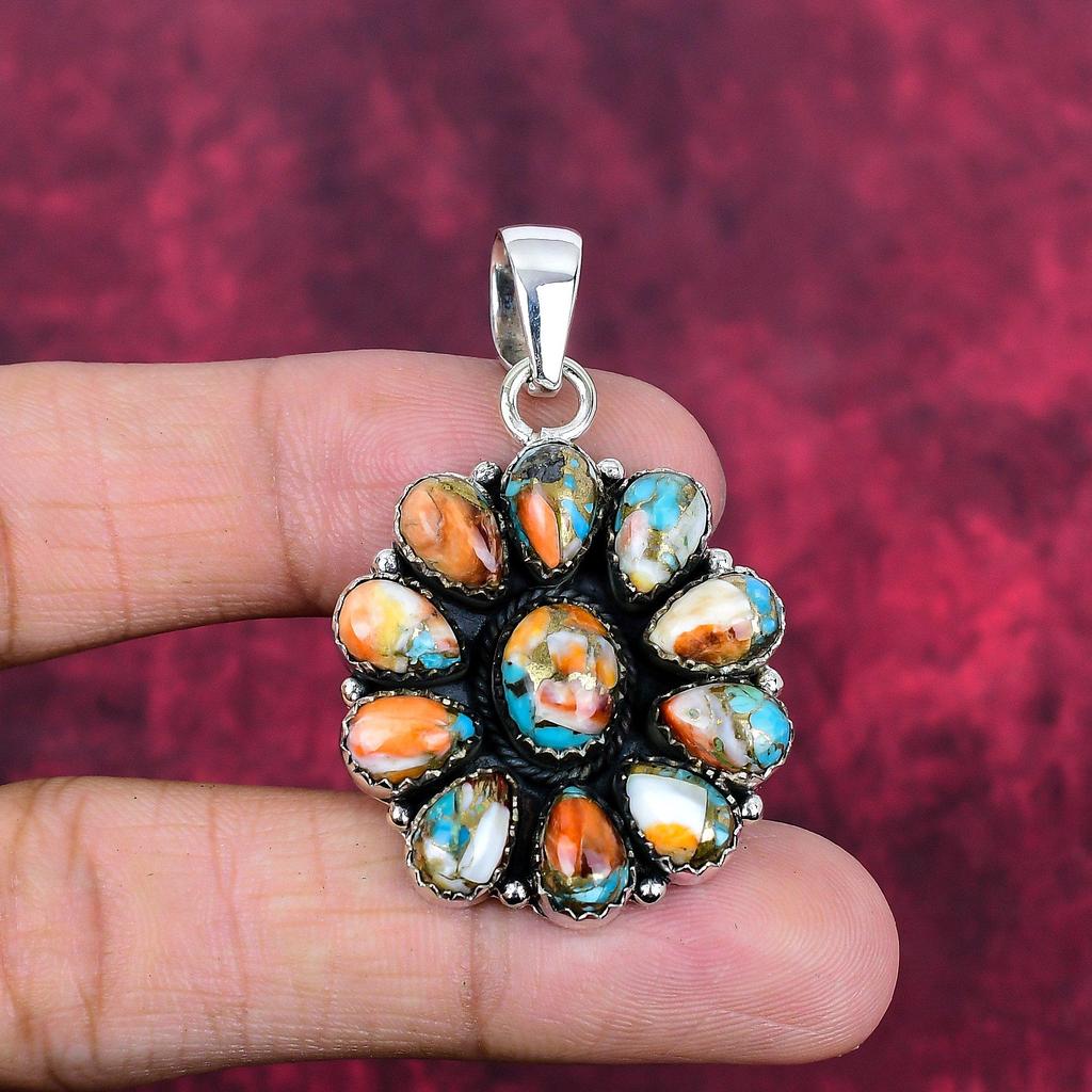Anhänger mit Orangefarbener Stachelmuschel, 925 Sterlingsilber Edelsteinschmuck, Handgefertigter Anhänger Fantastischer Schmuck, Geschenk für Sie