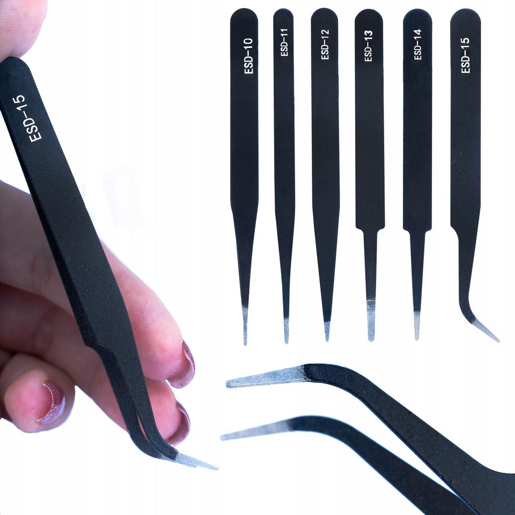 Rosfix Zestaw 6 Pęset Precyzyjnych ESD-10 do ESD-15 – Niemagnetyczne | Odporne na Kwasy | Ergonomiczne i Precyzyjne