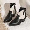 Spitze Zehenpartie Wadenhohe Damen Chelsea Boots Retro Mittelhohe Absätze Schuhe 2024 Winter Klassische Schuhe Neue Marke Kleid Goth Femme Schuhe