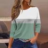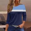 Damen Modisches Lässiges Rundhals-T-Shirt Mit Gestreiftem Patchwork-Druck Und Dreiviertelärmeln