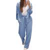 Damen Modischer Lässiger Langärmliger Einfarbiger Sweat-Cardigan Top und Hosen Set