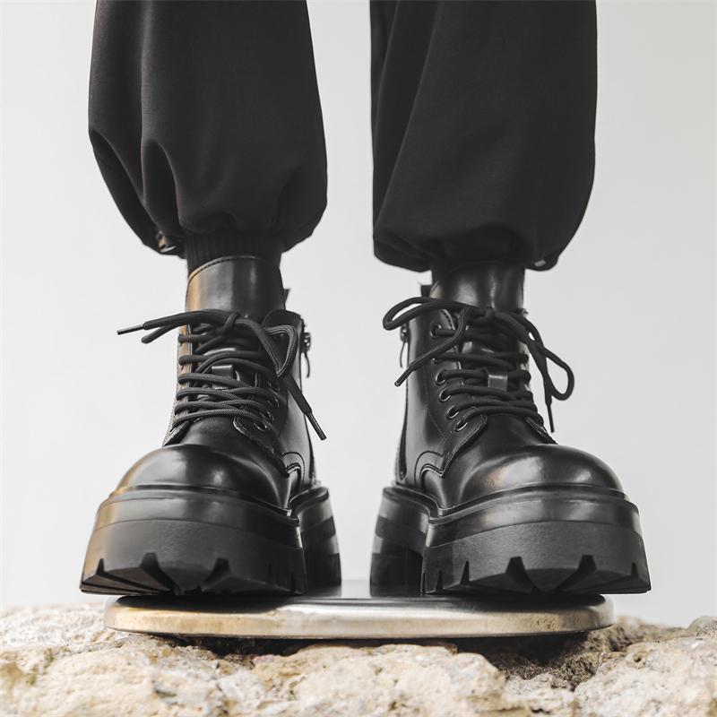 Hochwertige klassische britische Streetstyle-Lederstiefel für Herren Trend Schwarz Hombre Täglich Lässig Kleid Höhenerhöhende Schuhe
