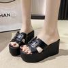 Nischendesign Schrägabsatz coole Hausschuhe Damen Sommerbekleidung bequem vielseitig 9cm dicke Sohle Höhenerhöhung vielseitige Hausschuhe