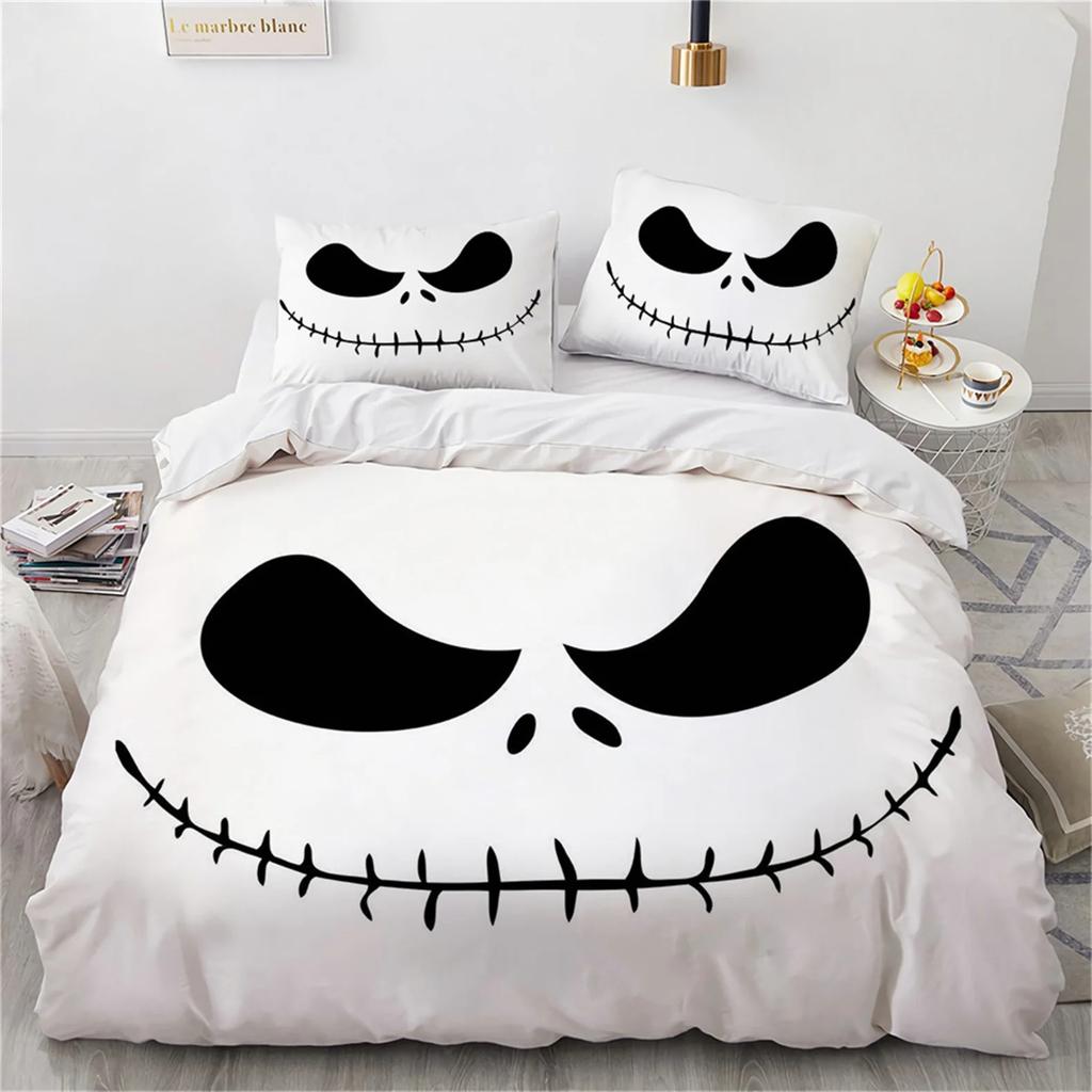 Halloween Totenkopf Bettbezug,Jack und Sally Bettdeckenbezug,Nightmare Before Christmas Bettwäscheset Kissenbezug,Halloween Deko