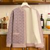 Rundhals Kontrastknopf Langarm Beflockung Strickjacke Damenjacke Modeoberteil