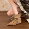 4CM inner height increase! Retro Korean women's pointed head strap short boots women's autumn and winter low-heeled short soft-soled Spice Girls