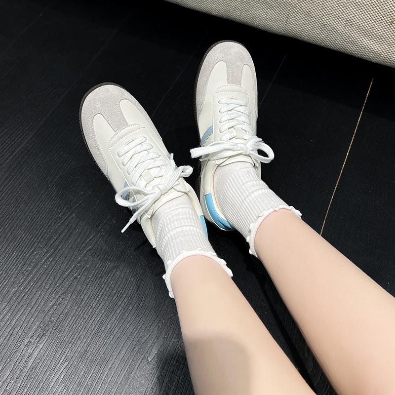 Three bars grape mother couple with the same round head retro versatile color matching platform casual sports shoes German training shoes tide spr