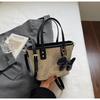 2025 new popular contrasting color portable small bag women's fashion retro bucket bag texture splicing shoulder messenger bag