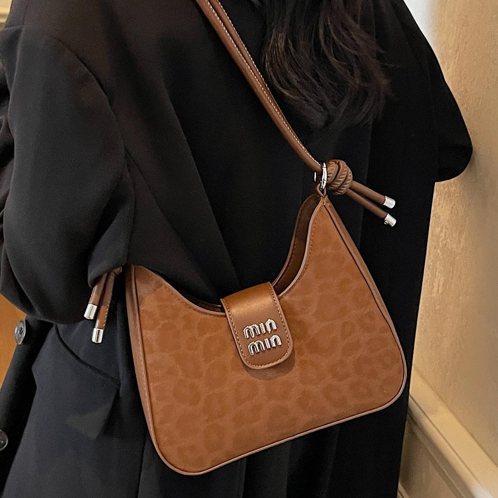 Retro niche shoulder bag women's 2025 new fashion high sense leopard print underarm bag simple trend commuter bag
