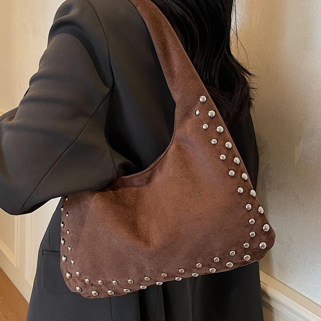 Large capacity shoulder bag women's 2025 autumn and winter new trend European and American style rivet underarm bag commuter casual tote bag