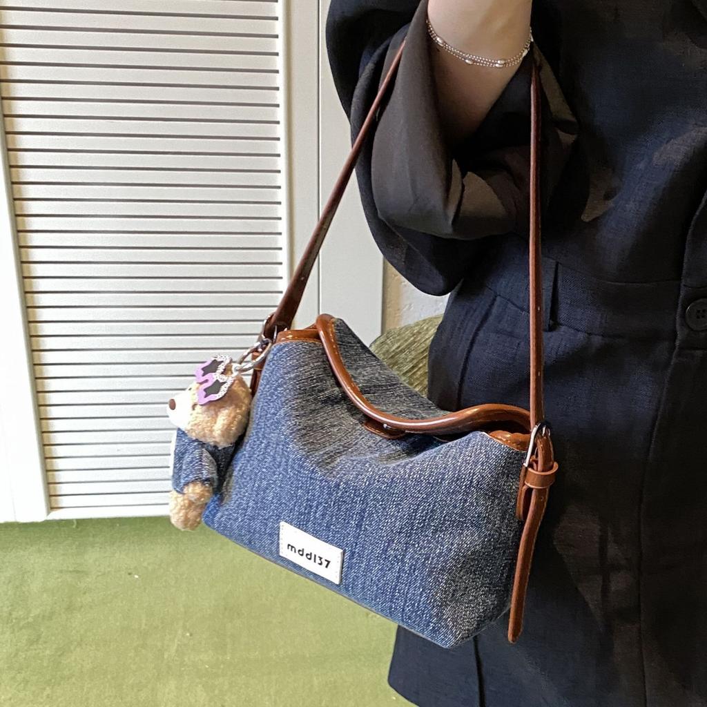 Fashion denim small bag women's 2025 new casual commuter shoulder bag high-end simple underarm messenger bag