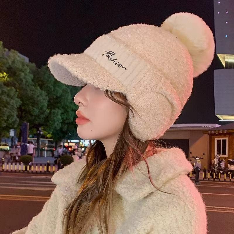 Lamb wool thermal cap women's winter thickened baseball cap cold cycling plush ear protectors