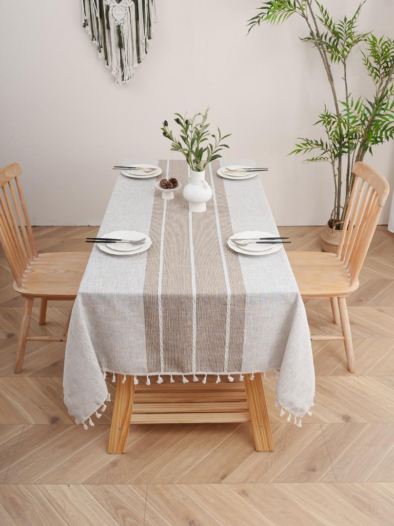 Khaki White Stripes Tablecloth for Living Room Bedroom Dining Table Classic Decor Anti-Slip Attractive Table Cover