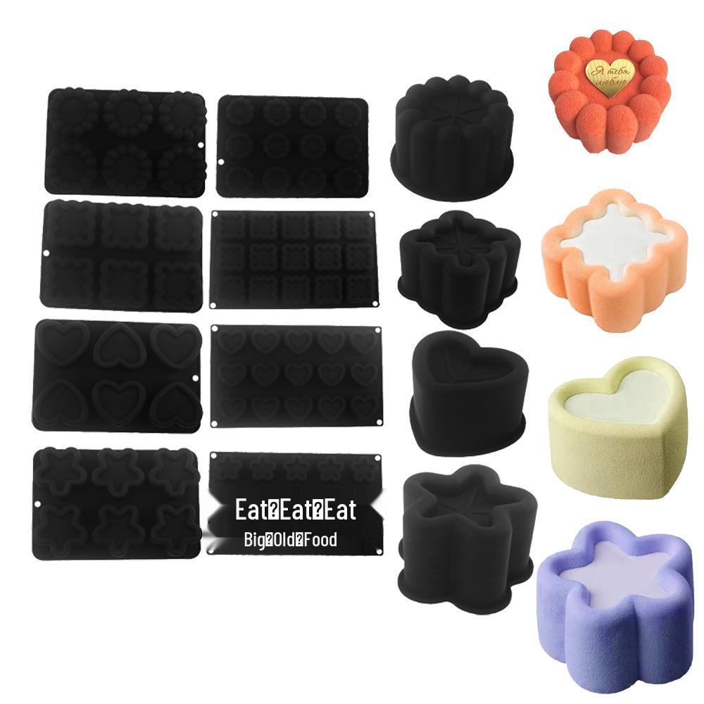 6-Kavitäten Silikon Mousse Form: Blumen-, Quadrat-, Dreiecks-, Herzmuster