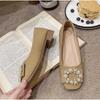 Perlenschnalle Prinzessin flacher Mund Einzelne Schuhe vielseitige Damenschuhe Herbst weiches Leder weiche Sohle Pedal leicht flache Beanie Schuhe