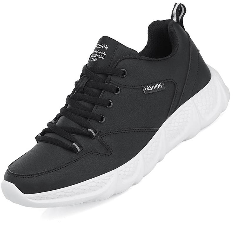 Lace-up Men's Sports Shoes PU Leather Running Shoes Black Outdoor Casual Sneakers for Walking Jogging Waterproof