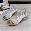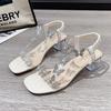 Sandalen Damen 2025 Sommer neu Römisch elastisches Band Strass Feenstil Mode transparent dicker Absatz Kristall hohe Absätze