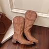 Retro spitze Damenstiefel dicker Absatz Schaft Ritterstiefel 2025 Herbst neu bestickte Mid-Stiefel Western Cowboy Stiefel