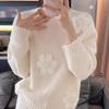 Damen Nagelperle 3D Blume Pullover Süße Damen Rundhals Strickpullover Herbst Locker Sanft Modisch Damen Pullover Top