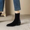 Herbst und Winter spitze mittelhohe Stiefel Damen Wildleder Übergröße Damenstiefel Blockabsatz bequem Koreanische Version neu einfarbig