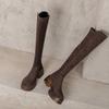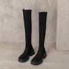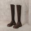 Herbst- und Winter-Wildleder-Stretch-Kniestiefel, neue hochhackige, dicksohlige, rutschfeste Damenstiefel mit runder Spitze, koreanische Version in großen Größen Marti