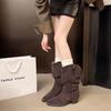Lederversion~ Französische spitze Quaste hochhackige Stiefeletten 2025 Herbst neue mittelhohe Stiefel Innenhöhe erhöht Western-Cowboystiefel