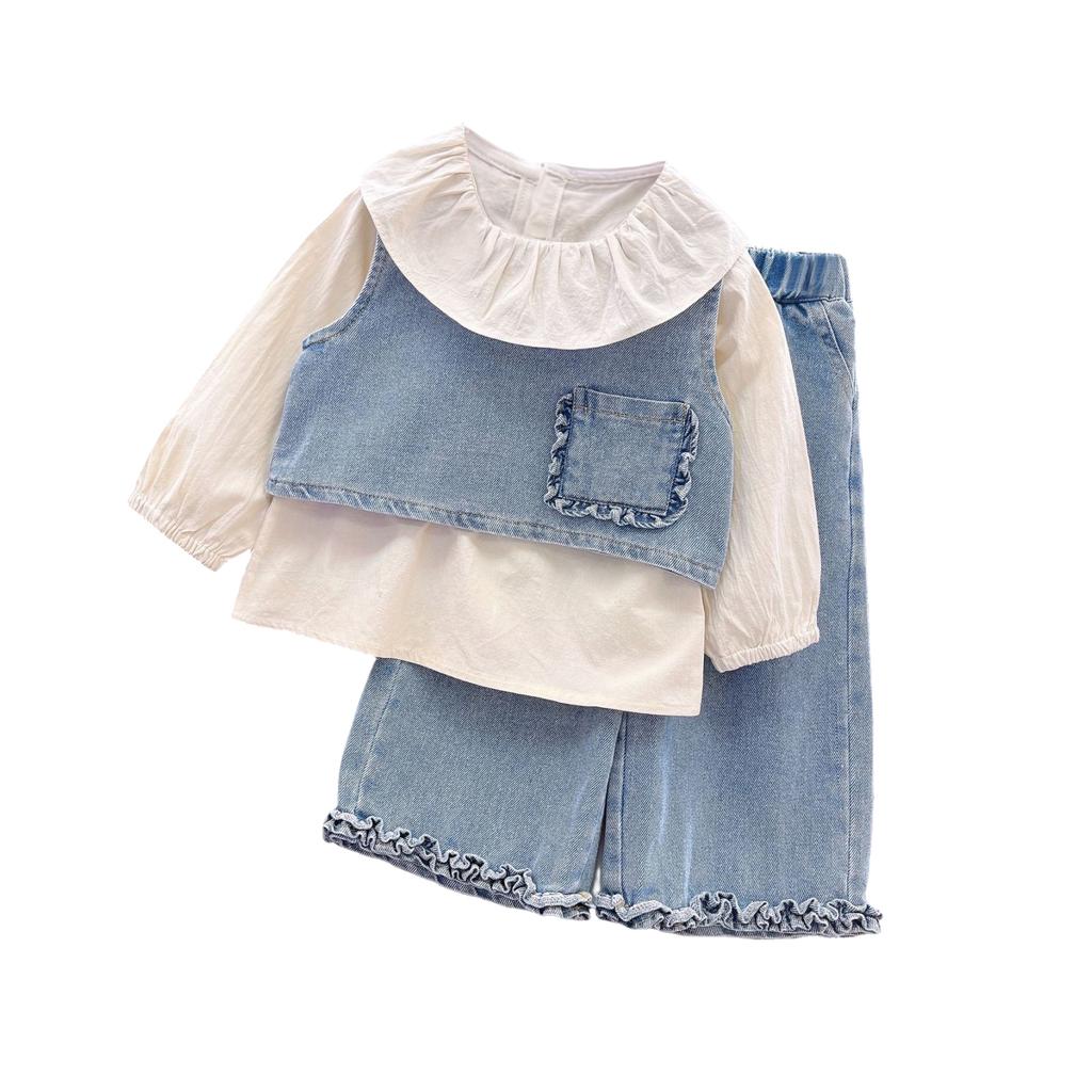 Mädchen Denim & Spitze Set - Jacke & Jeans 2-teiliges Outfit