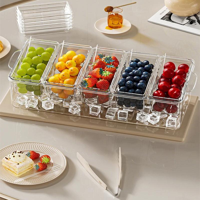 Obstsalatbox 5 Fächer mit Gabel Tragbare Frischhaltebox Picknickfach Gefrierfach Aufbewahrungsbox für Zuhause Kühlschrank