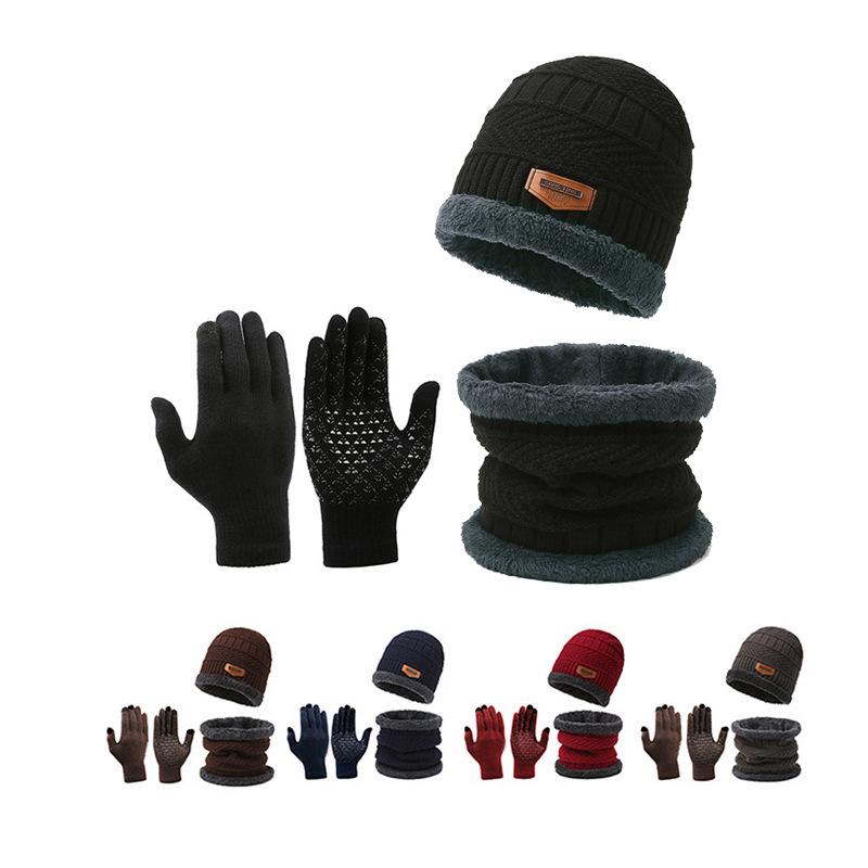 Three-piece Knitted Hat Winter Warm Hat Non-slip Touch Screen Gloves Piled Thickened Wool Scarf Hat