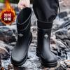 Winter velvet rain shoes men's medium tube thick-soled non-slip men's wear-resistant water shoes outdoor waterproof and warm rain boots
