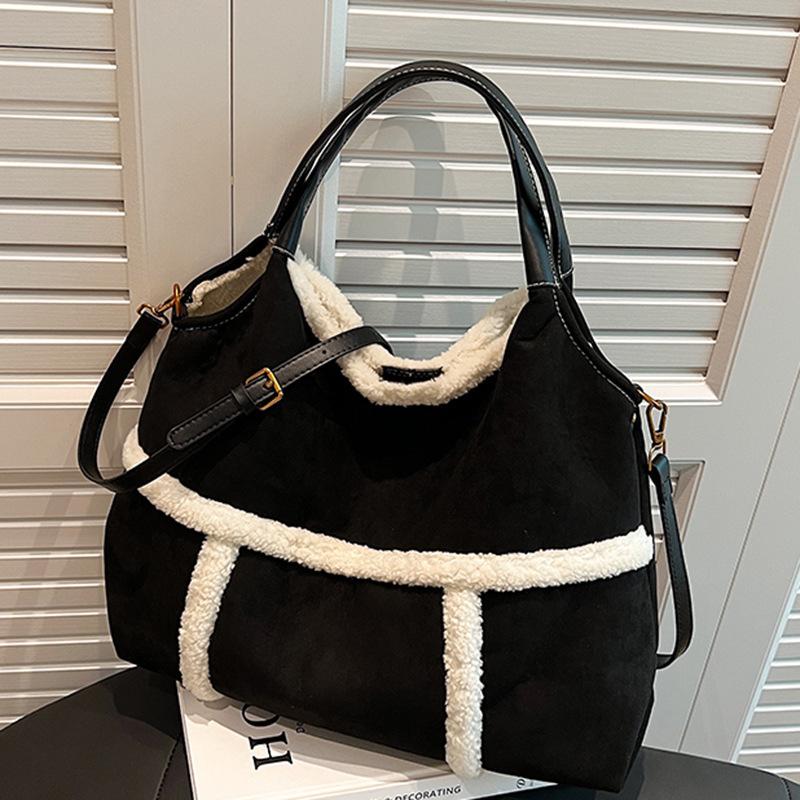 2025 autumn new casual simple large-capacity suede portable tote bag women's commuter shoulder tote bag