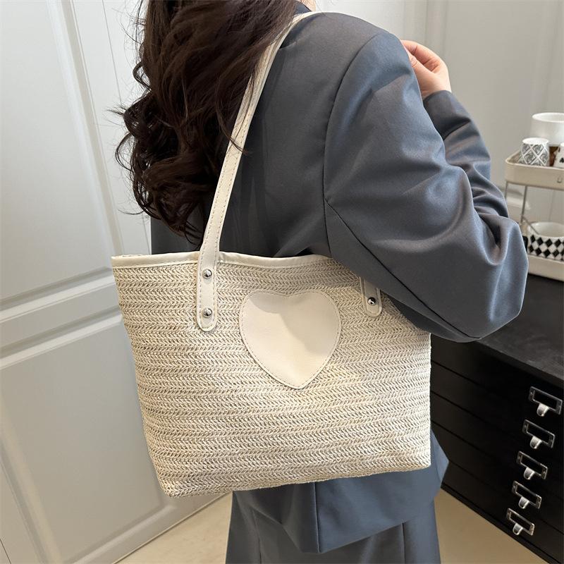 Bag women's bag 2025 new Korean version, simple small bag, love straw woven bucket bag, tote bag