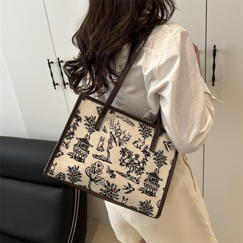 National style ink painting bag 2025 spring new antique fashion large capacity shoulder bag feeling women's bag tote bag women