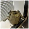 Nylon drawstring bundle bag shoulder bag women go out simple and lightweight mobile phone bag fashion casual literary and artistic messenger bag