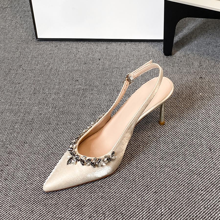 Schafslederversion~ Französisches Temperament Strass dünner Absatz Pendler spitze High Heels Damen Sommerbekleidung ein Wort mit Taschenkopf Sandalen
